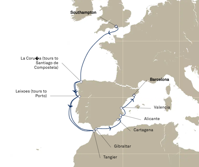 Prices are EUROS or US DOLLARS as indicated in the Price table. They are CRUISE ONLY prices on full board, excluding any air or land service EXCEPT if otherwise indicated in the itinerary program. Prices and availability shown are subject to changes until the time of booking.Los precios no incluyen las propinas, son voluntarias.Antes de confirmar su reserva en el proceso online, se mostrará con claridad el Precio Completo del crucero y los servicios adicionales solicitados, y se indicará el calendario de pagos y el calendario de penalizaciones en caso de cancelación que usted deberá aceptar para poder continuar con la reserva.Así mismo con la realización de la reserva se acepta del Contrato de Pasaje que vincula la relación entre el pasajero y la naviera Cunard.A modo informativo las condiciones más habituales de reserva son las siguientes:Para la confirmación de reservas realizadas con antelación de mas de 80 días de la fecha de navegación se solicitará el pago de un depósito de confirmación reducido de solo 60 eur / persona, no reembolsable, ni transferible en caso de cancelación antes la fecha de pago final. Este depósito no es aplicable a cruceros de vuelta al mundo y en algunos cruceros a camarotes en categorías tipo Suite. Como alternativa, también se pueden confirmar mediante el pago del 25% del importe total del crucero a la fecha de opción. En este caso no aplican gastos de cancelación del crucero antes de la fecha de pago final. Adicionalmente, para cruceros cuyo programa de itinerario incluya paquete aeroterrestre se solicitará el pago de un depósito adicional de 120 eur/persona, no reembolsable, ni transferible en caso de cancelación antes de la fecha de pago final.Pago final: 80 días antes de la fecha de navegación. En caso de no recibir el importe final en la fecha indicada, la compañía cancelará automáticamente la reserva del crucero con gastos de penalización del 10% del precio total del crucero.Para reservas realizadas a menos de 80 días de la fecha de navegación se solicitará pago total a la fecha de opción.Los cambios de nombres están permitidos hasta 30 días antes de la fecha de salida salvo que la tarifa promocional aplicada indique lo contrario.Los servicios terrestres de la naviera deben solicitarse con fecha límite hasta 20 días antes del inicio de la navegación.Los aéreos contratados con la naviera solo pueden incluirse una vez confirmado el crucero, no permiten cambio de nombres y no son reembolsables en caso de cancelación